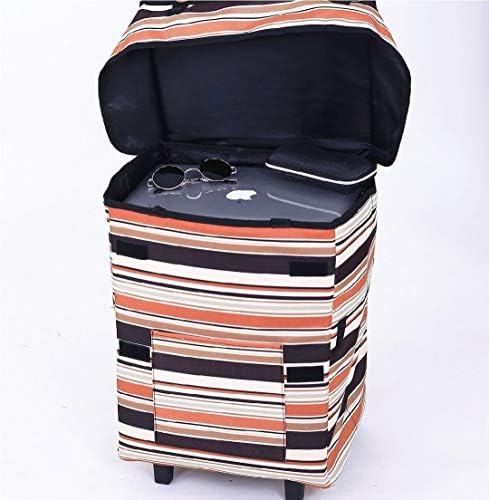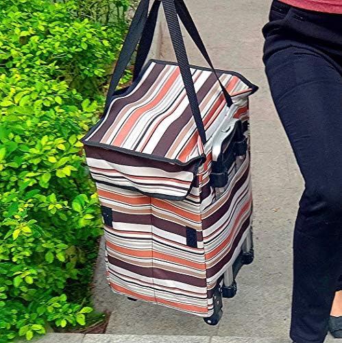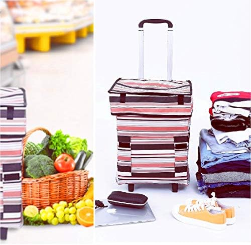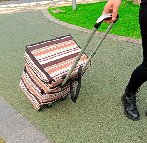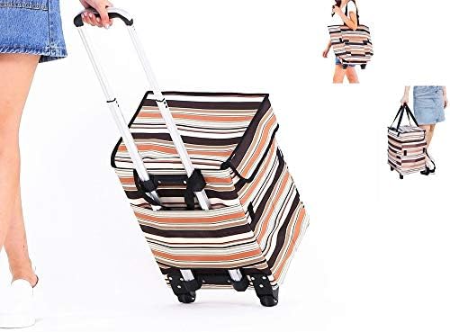 1unit Fineget Rolling Shopping Trolley Tote Bag with telescopic handle and wheels [Classic Striped Pattern]