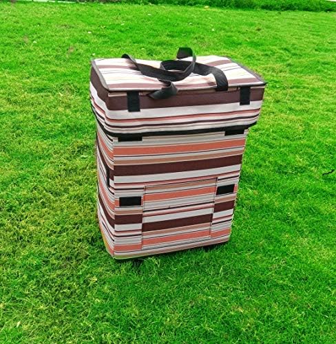 Fineget Rolling Shopping Trolley Tote Bag is suitable for Shopping, Travelling, Vacations, Camping, Beach Play, Picnic, Laundry, Luggage, School Supplies, So it’s a must-have fashionable reusable essential for Shoppers, Students, Teachers, Office workers etc.. Besides with the fashionable festival stripe aspect, Fineget foldable Shopping Trolley Reusable Tote Bag adopts the practical and reinforced collapsed design, so it is pretty practical to protect and organize your stuffs, and very convenient to put in and take out your stuffs quickly, so as to you can always avoid the awkward of scattering your belongings on ground anytime. Btw, it is odorless since high quality raw material and precise manufacturing process, so Fineget Foldable Trolley can always keep good shape, suitable for all age people use, it is also a nice gift option for some body you care!