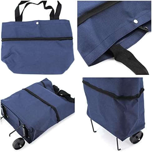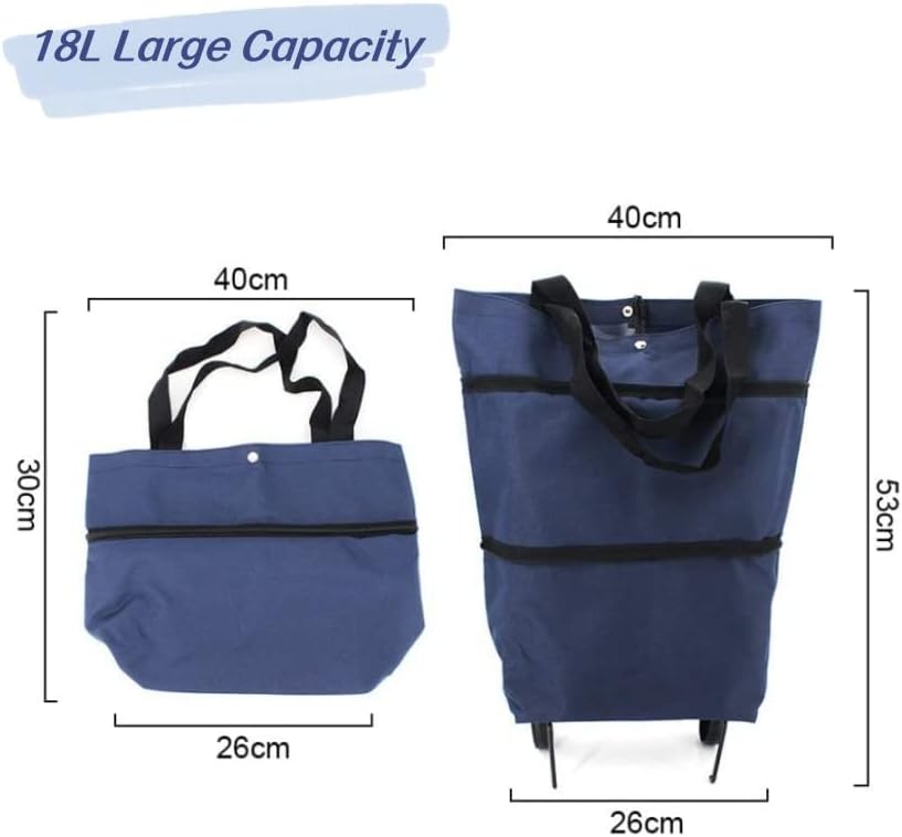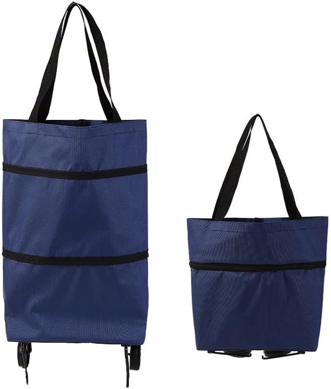 【Design】Foldable wheels for you to switch between shoulder bag or expand to full size as a shopping cart. It will stand up its own when fully extended. The bottom is PP board with foldable wheels and button closed, and it is enough firm and solid. Whenever you need, just open the zipper on the bag and the shopping bag is stretching.