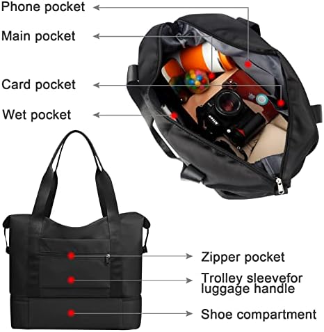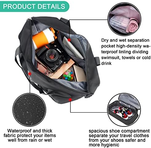 Travel Bag Weekend Bag, CS COSDDI Overnight Bags for Women 29L Large Travel Duffel Holdalls, Dry & Wet Seperated Weekend Bag Waterproof Gym Bag Carry On Bag for Sports Gym Weekender Tote Bag