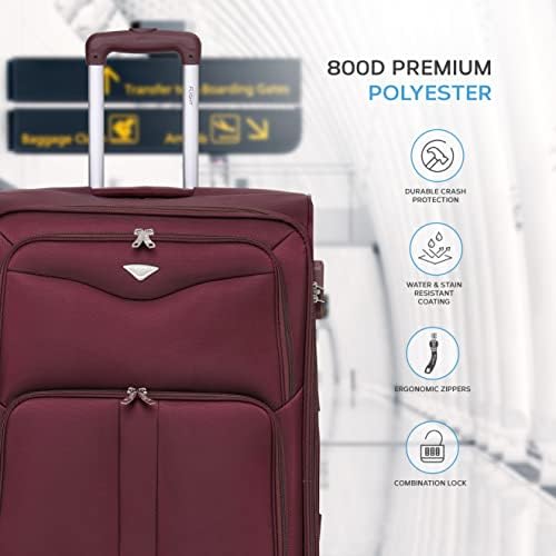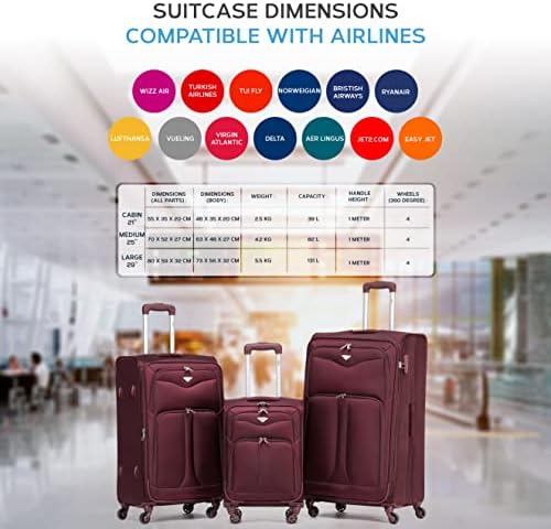 LUGGAGE PROTECTION: Whenever and wherever you travel we know your luggage and contents are precious to you. Featuring rip resistant luxurious and superior 800D hard wearing polyester material withstanding the rigours of modern transport and airline handling protecting your contents during your travels. Cabin size comes with a 3-digit combination barrel padlock to lock the zips together for added security. Medium and Large suitcases have a secure 3 digit combination lock.