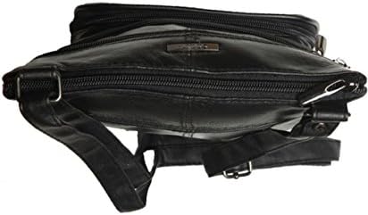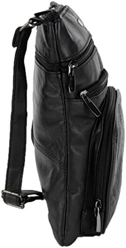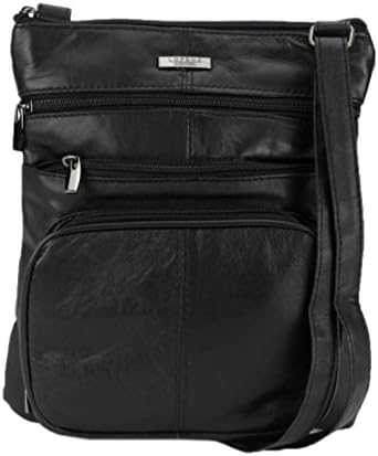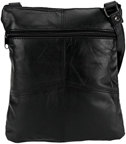 Ladies/Women’s Super Soft Leather Shoulder Bag/Crossbody Bag with Many Pockets (Black). Size: length 22cm, height 26cm, depth 1cm, strap length: 130cm (adjustable) 1 zippered main compartment 1 zippered pocket inside. 3 zipped pockets on the front and 1 zipped pocket on the back. Made of soft nappa leather