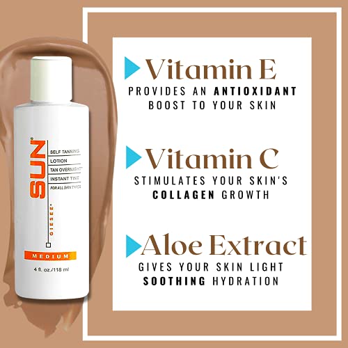 Sun Laboratories Tan Overnight Self Tanning Lotion 4 oz – Natural Sunless Body and Face Lotion, Medium Self Tanner for Sun-Kissed Fake Tan, Skin-Friendly Tanning Bed Lotion