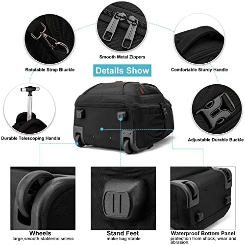 Travel Backpack with Wheels, 17inch Wheeled Backpack for Men Women Rolling Laptop Bags Waterproof Rucksack Cabin Bag with Wheels Trolley Backpack Suitcase Business College School Bag, Black
