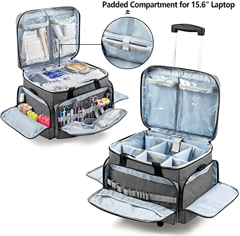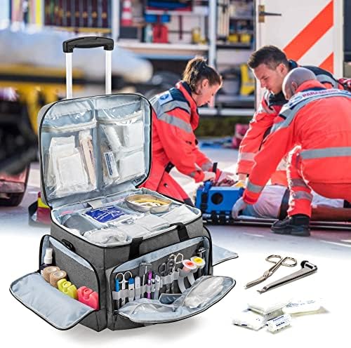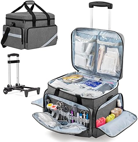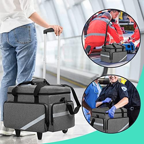Trunab Rolling Medical Bag with Detachable Trolley, Nurse Roller Bag with Removable Dividers, First Responder Bag Empty on Wheels for Nurse, Doctor, EMT, EMS Professionals, Grey – Patented Design