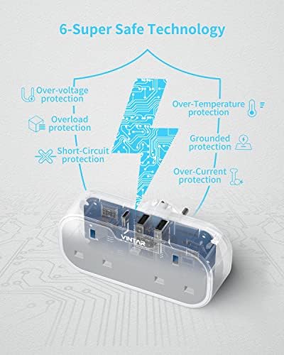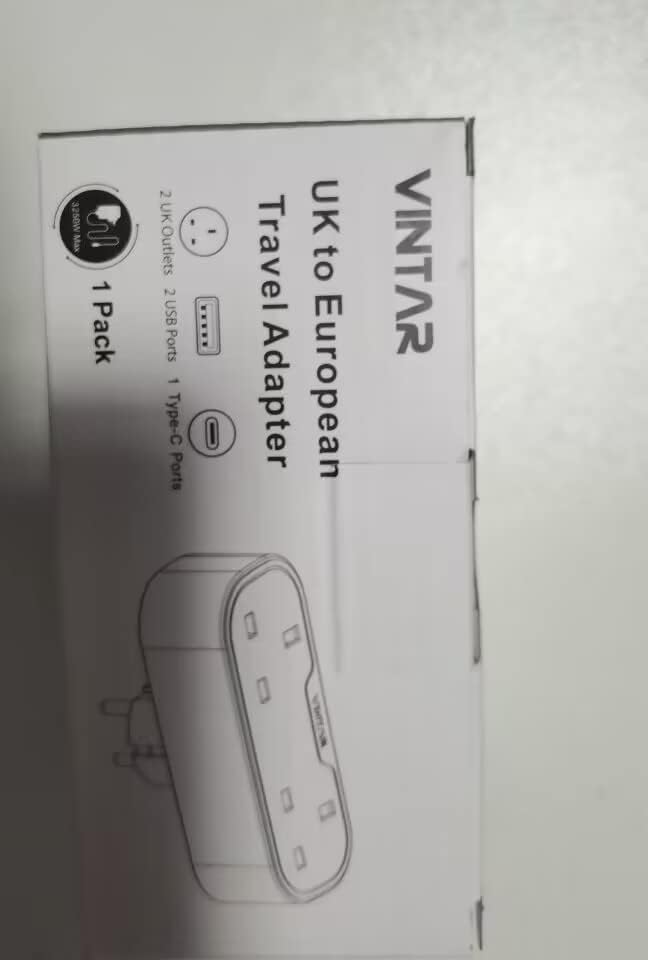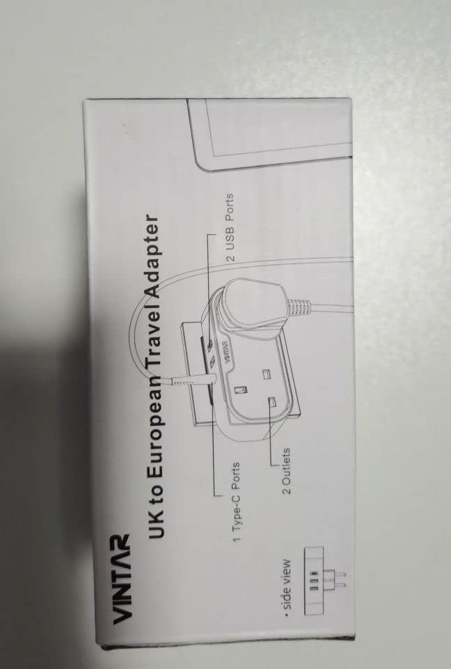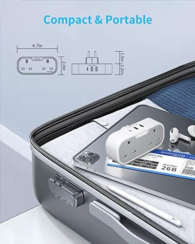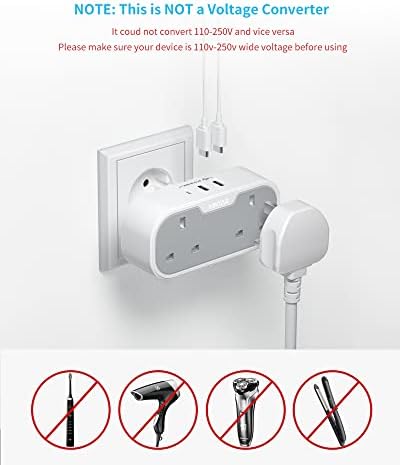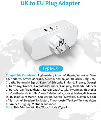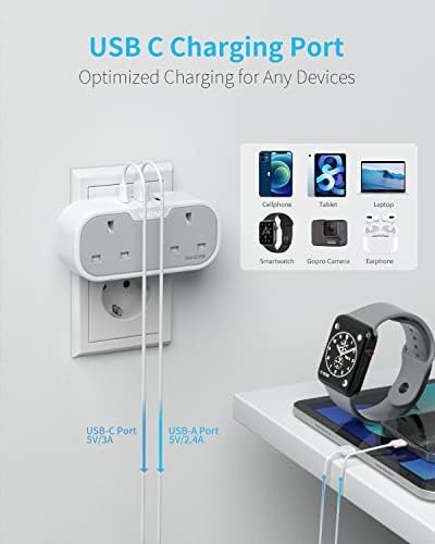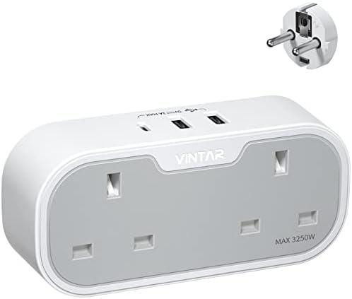 UK to European Plug Adapter, VINTAR 2 Way Grounded Schuko Europe Travel Adapter with 2 USB & 1USB C Ports, Double Plug Adaptor UK to EU for Germany France Spain Russia and More (Type E/F),1Pack