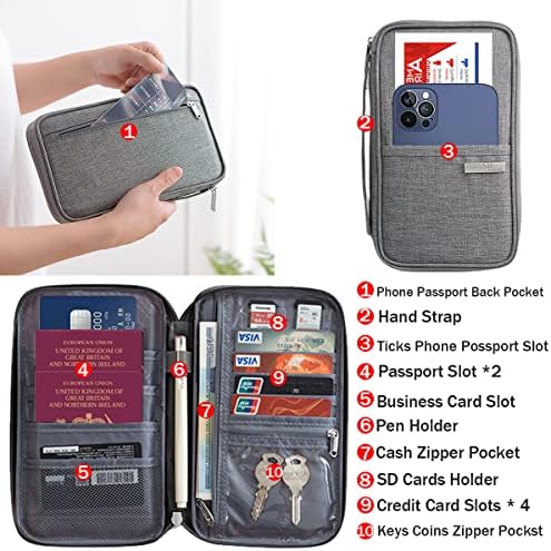 💝PERFECT FOR TRAVEL💝 This travel document holder is a travel accessories for women and men. Suitable for family travel, camping, business travel, etc. Keep everything in one place, neat and organized. Make your journey comfortable and wonderful. Perfect for airports, crowded markets, buses, trains, sporting events and other festivals. With fixed side straps, you can simply hang it on your wrist or carry it